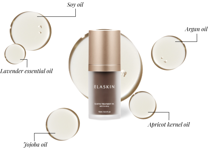 ELASKINは、大豆エキスによってエラスチンの発現が増加し、研究により、未変性ソイオイルはエラスチンとコラーゲンの含有量を増やし、⽪膚の⽼化の兆候を軽減できる有望なスキンケア成分であることがわかっています。(ジョンソン・エンド・ジョンソン社が発表した科学研究論⽂)
