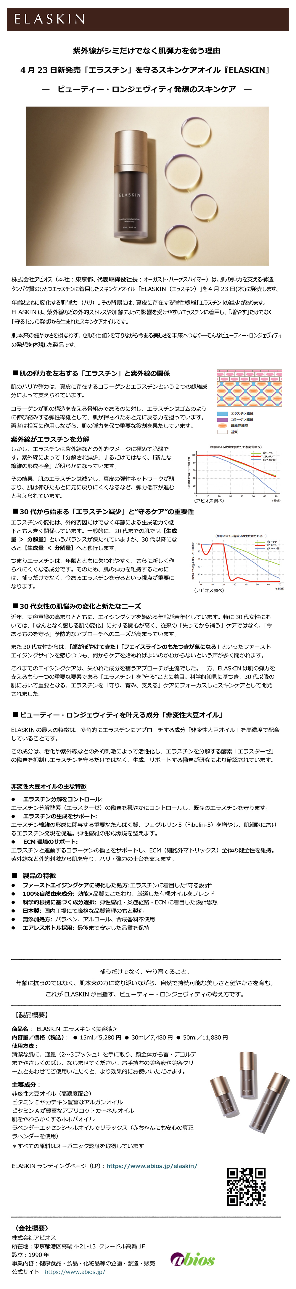 新商品ELASKIN発売のご案内 in ニュース 新商品ELASKIN発売のご案内 https://www.abios.jp/wp-content/themes/movedo/images/empty/thumbnail.jpg 150 150 【アビオス】100% Pure Natural 【アビオス】100% Pure Natural https://www.abios.jp/wp-content/themes/movedo/images/empty/thumbnail.jpg 2026年4月23日 2026年4月23日